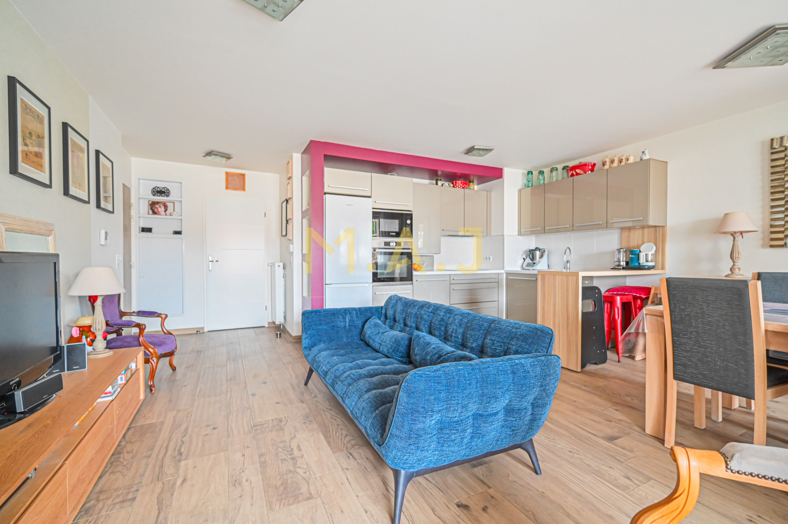 Ce bien aux prestations soignées offre une entrée, un séjour lumineux avec cuisine ouverte donnant sur une superbe terrasse de 12 m², deux chambres , une salle de bains et des WC indépendants.