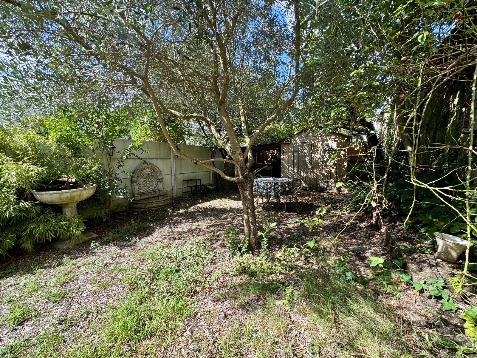 Jardin arboré sur l'arriere. Stationnement pour une voiture sur la parcelle.